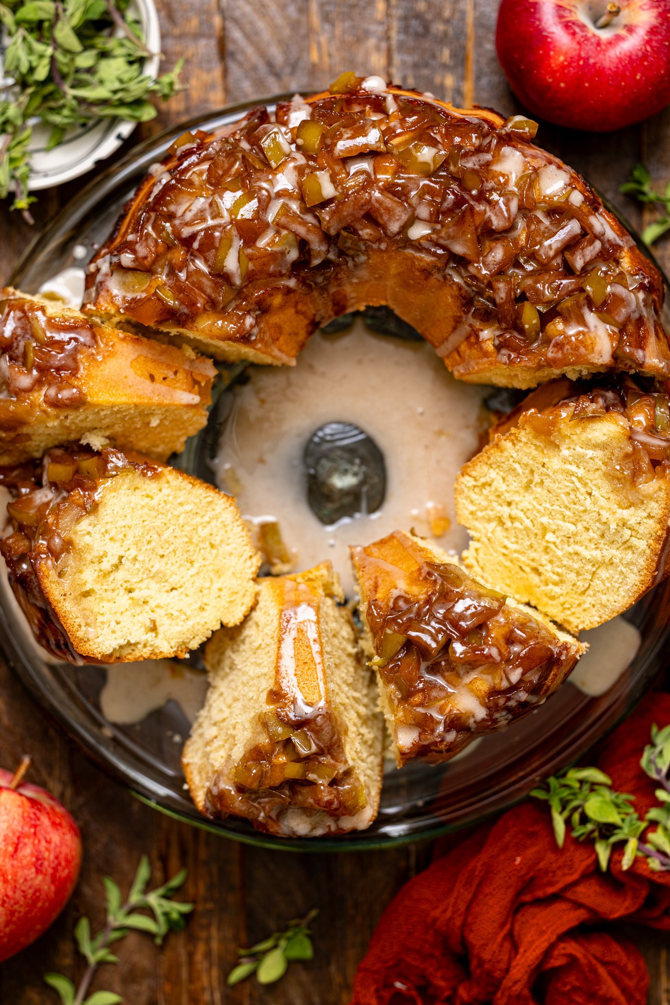 Absolutely. Replace the butter with vegan butter or coconut oil, and use a dairy-free milk like oat, almond, or coconut milk. The result is still moist, rich, and full of apple-cinnamon flavor.